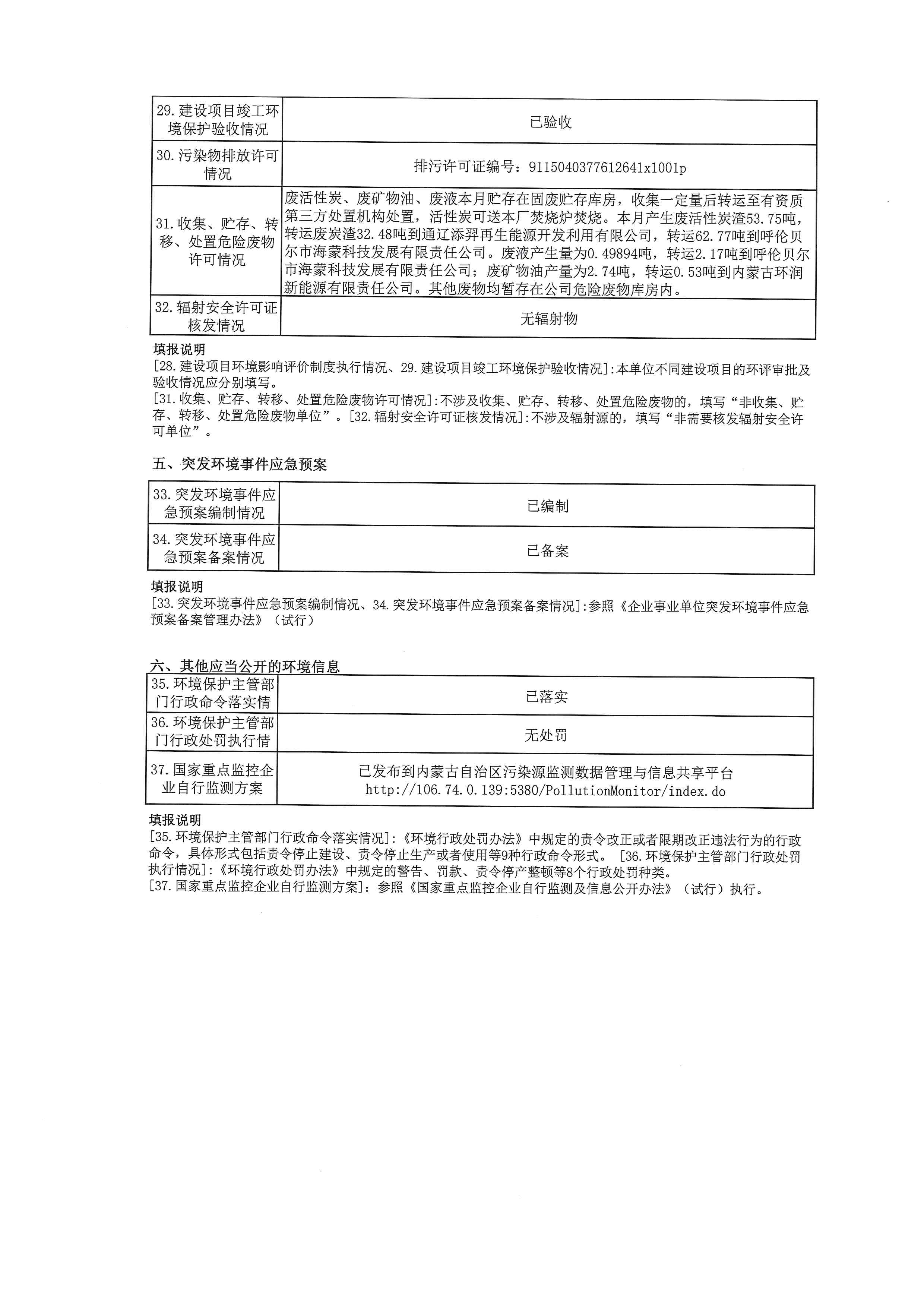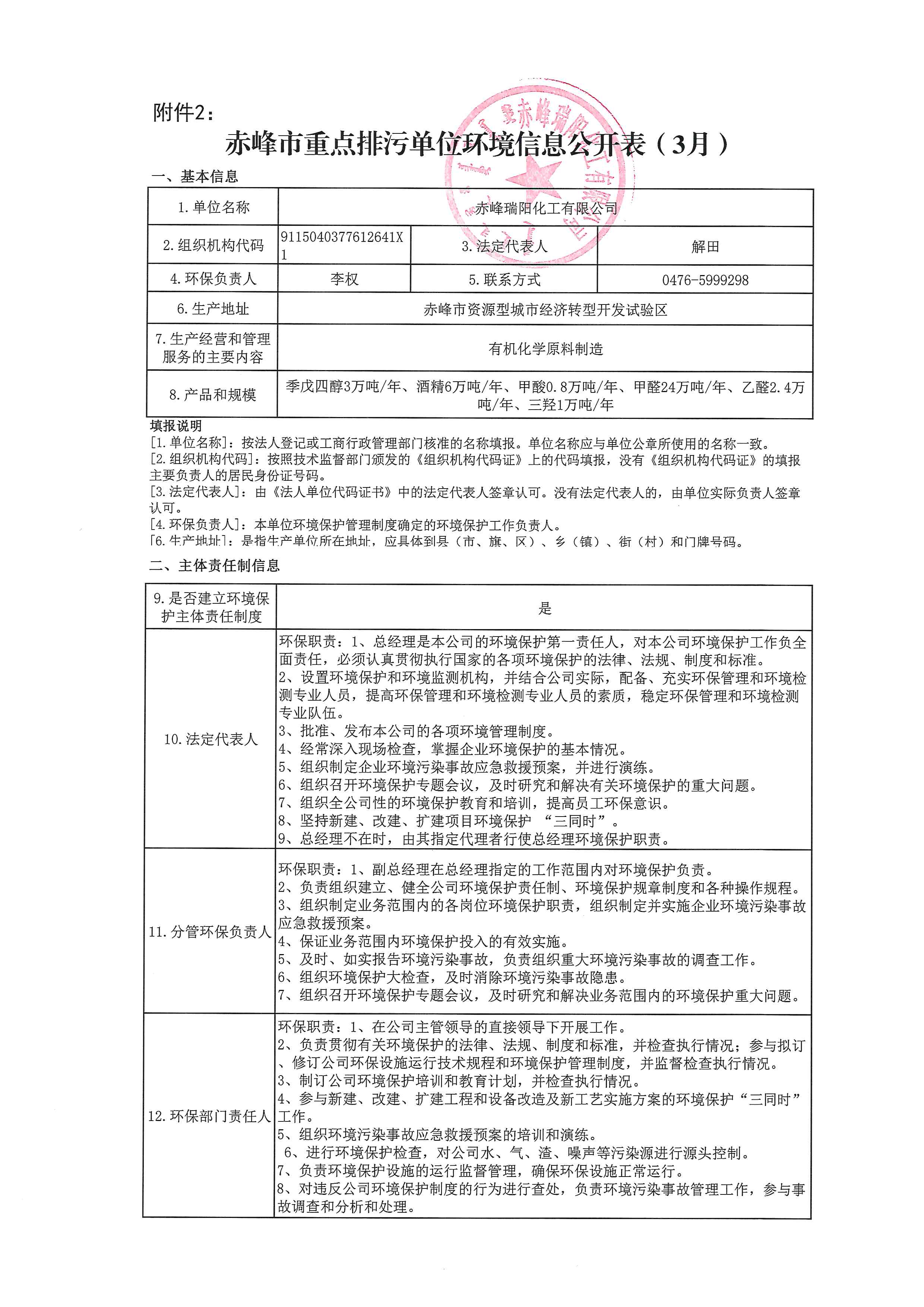 赤峰市重點排污單位環境信息公開表【3月】